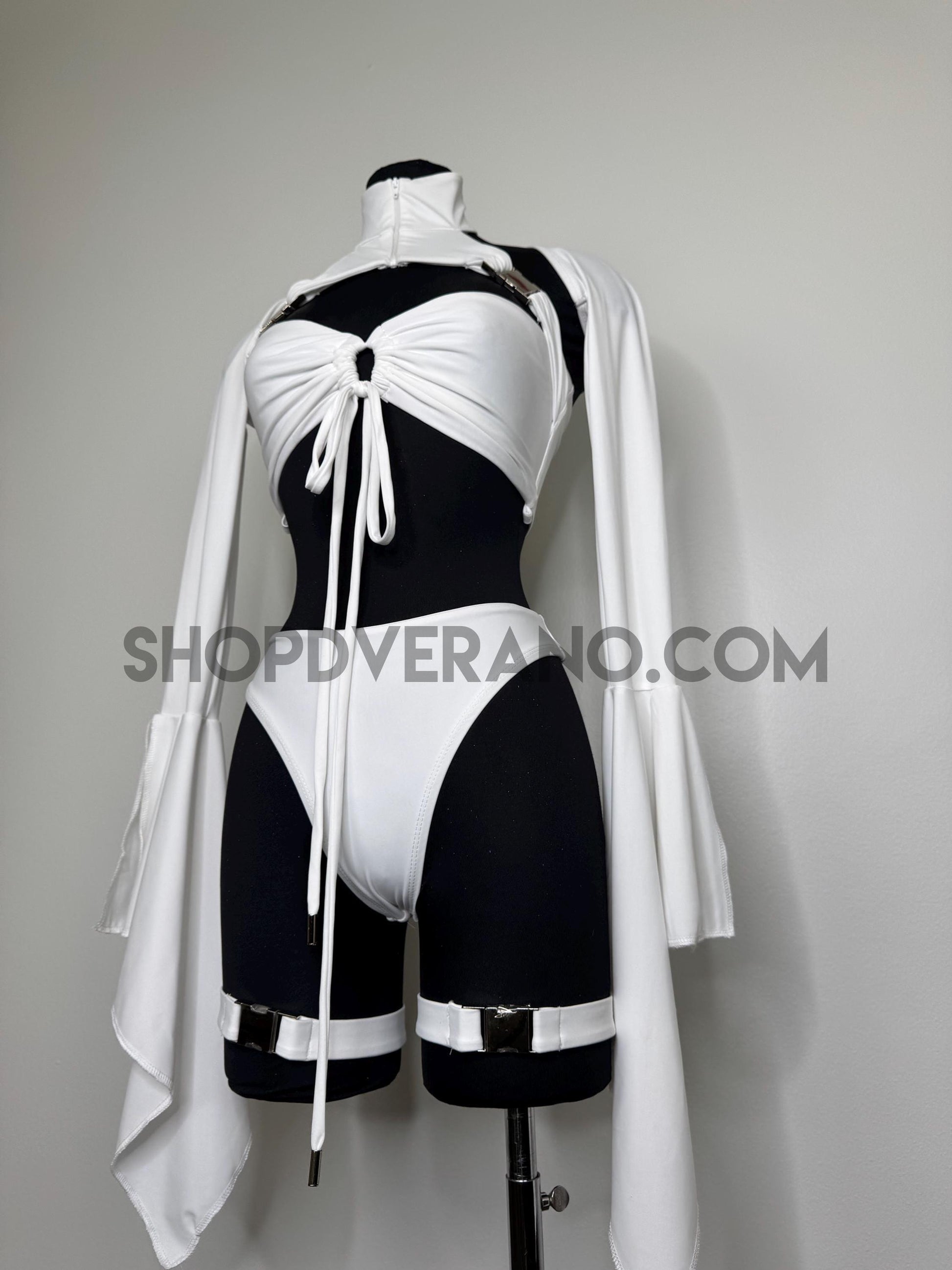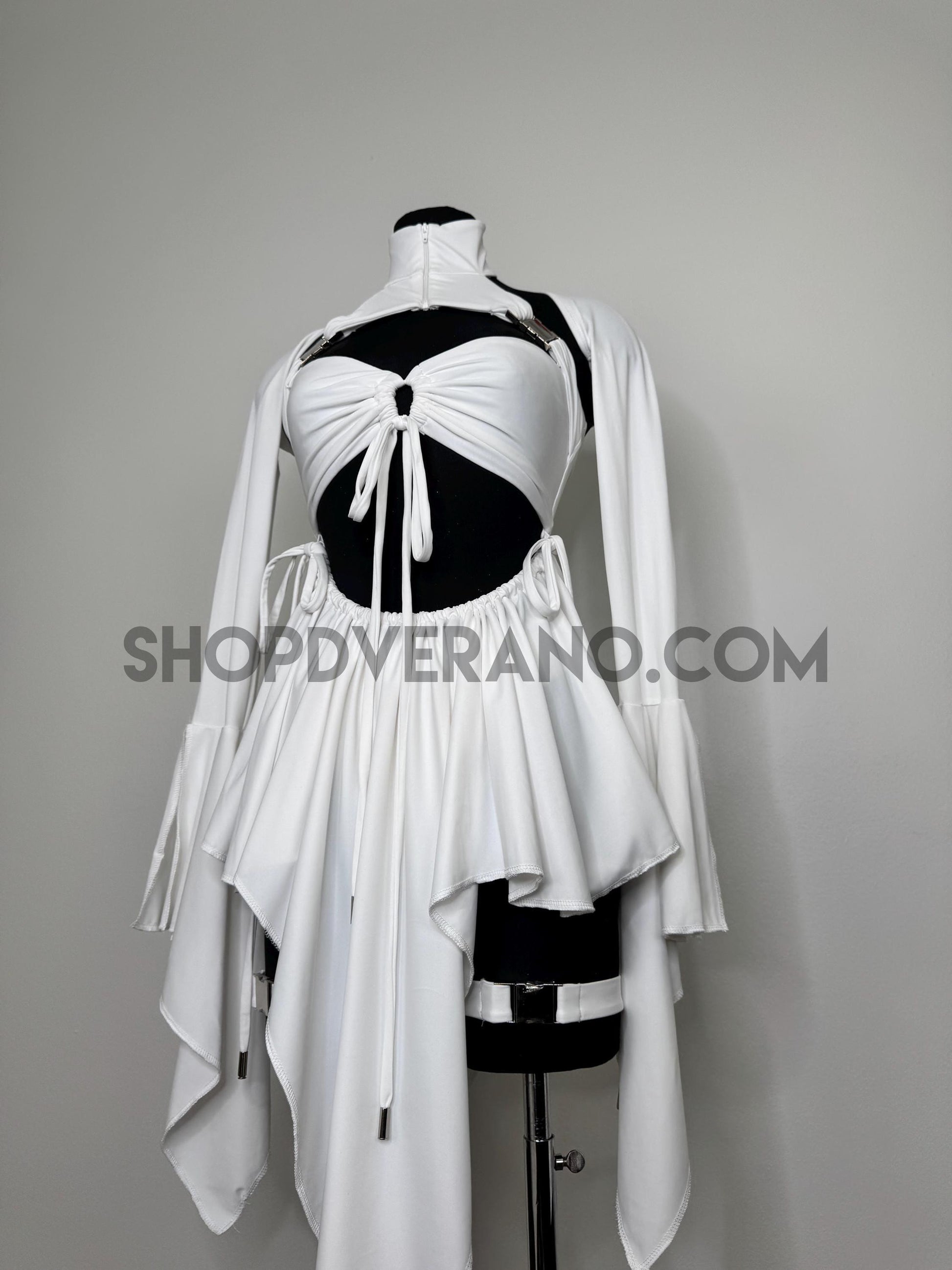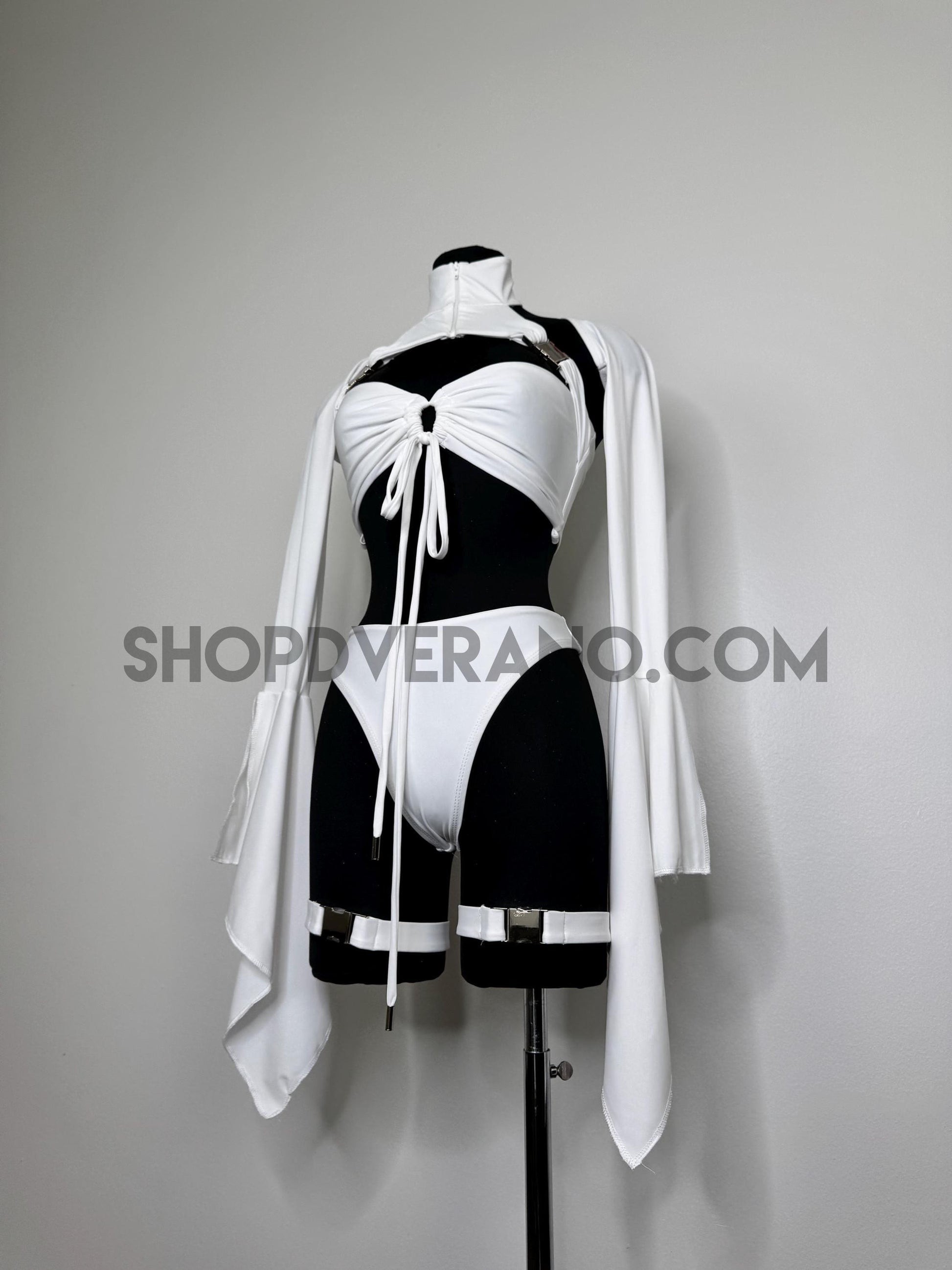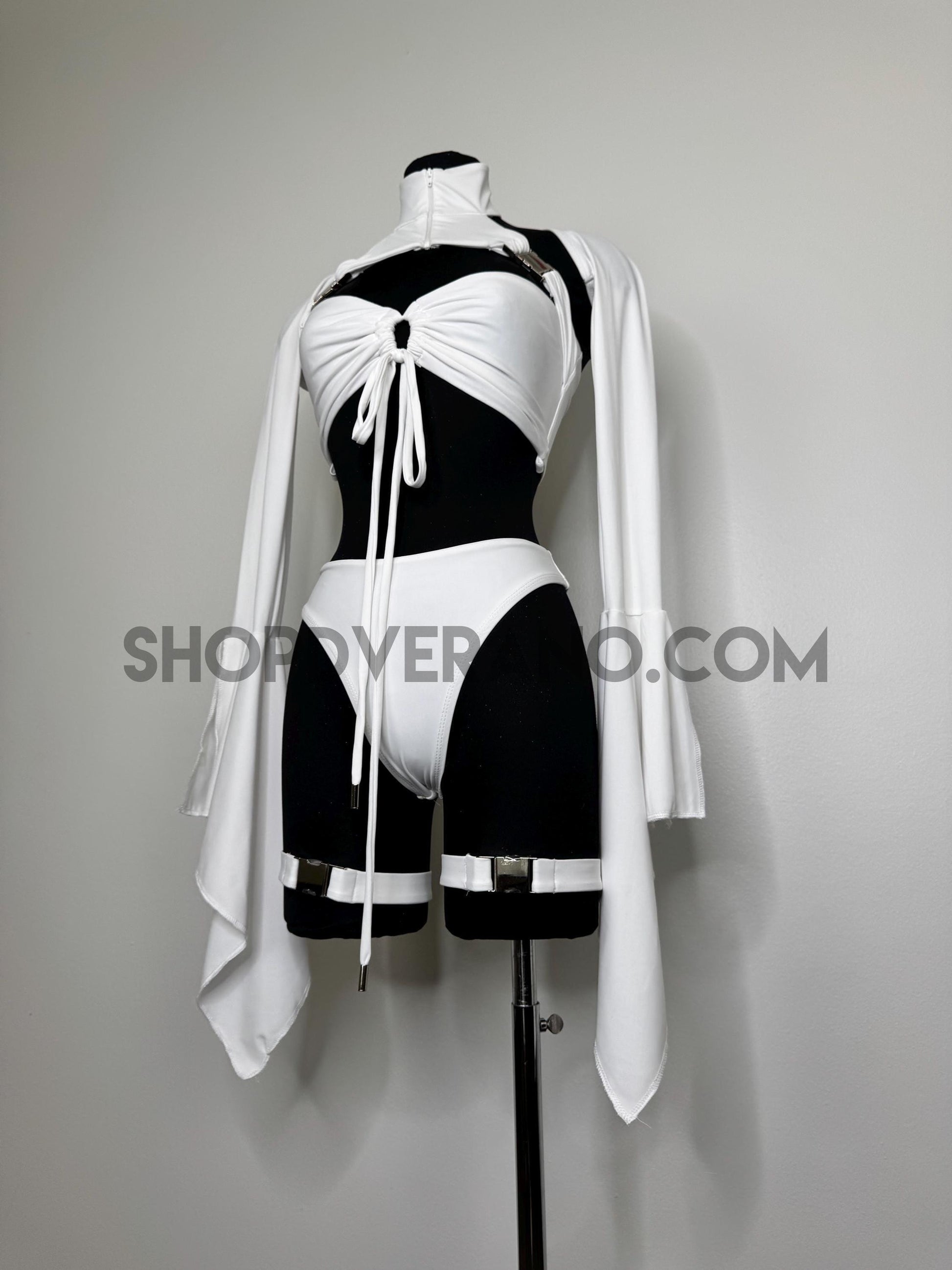 Introducing our new Angelic Rave Fairy Goddess Set with leg Buckles - the perfect festival suit to elevate your party game. Made from lycra spandex , this rave outfit is designed to hug your curves in all the right places while ensuring breathability for hours of dancing and partying.