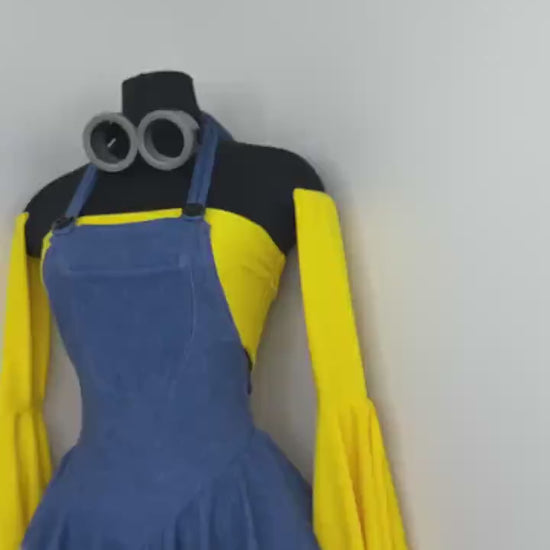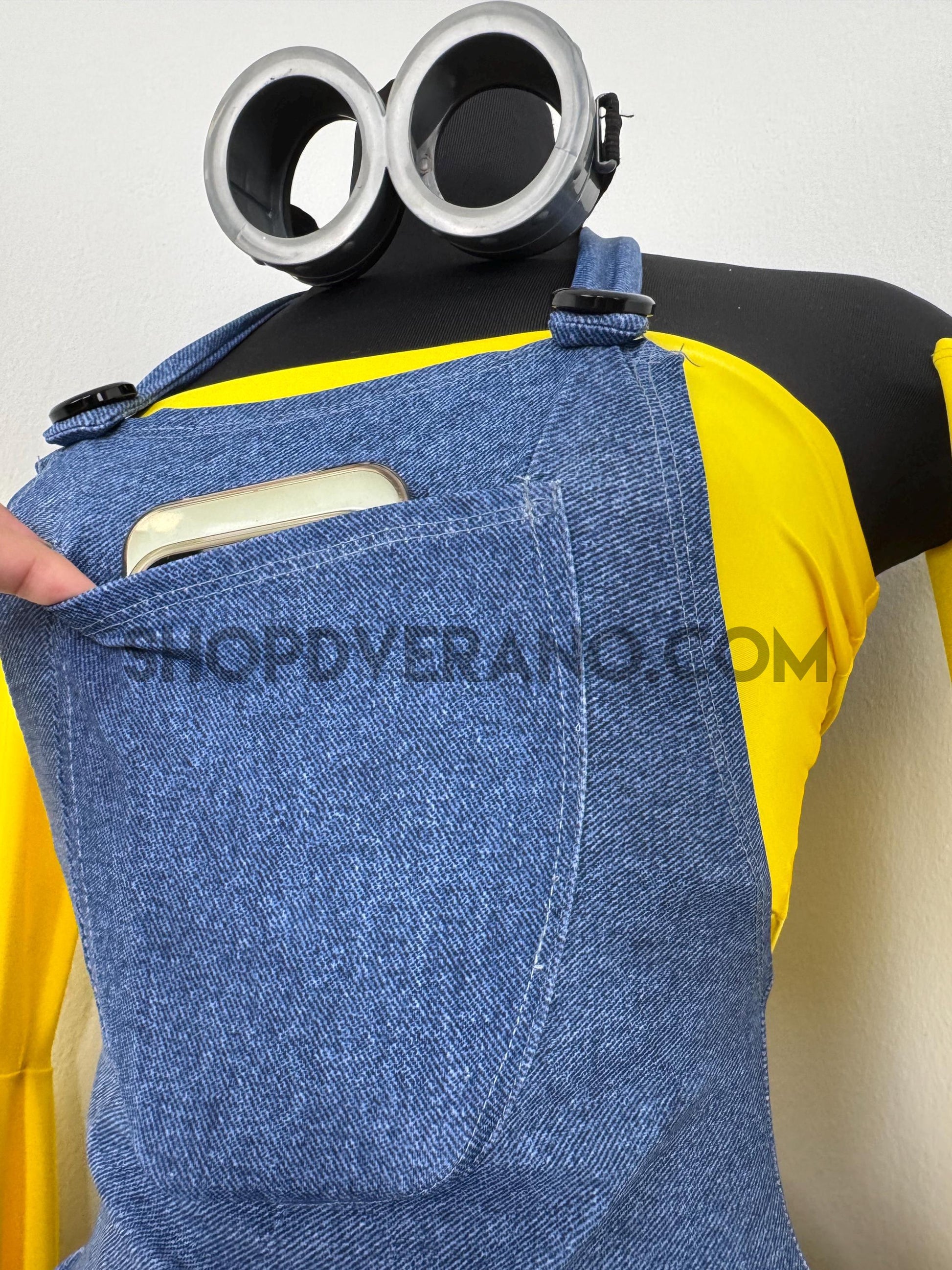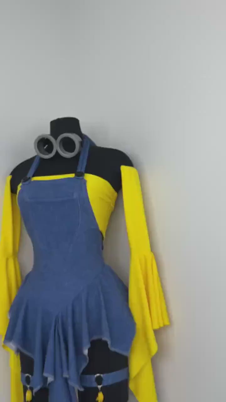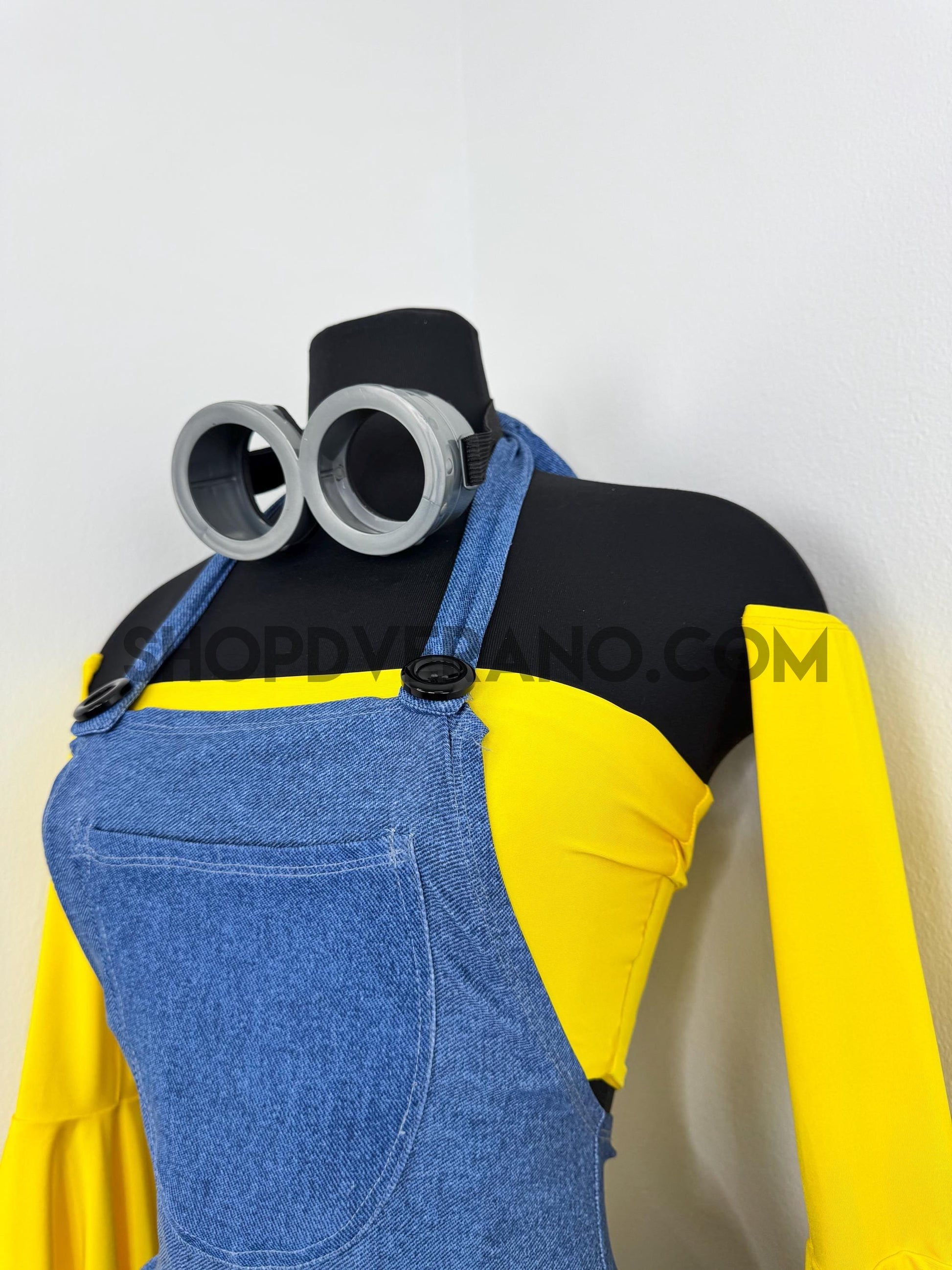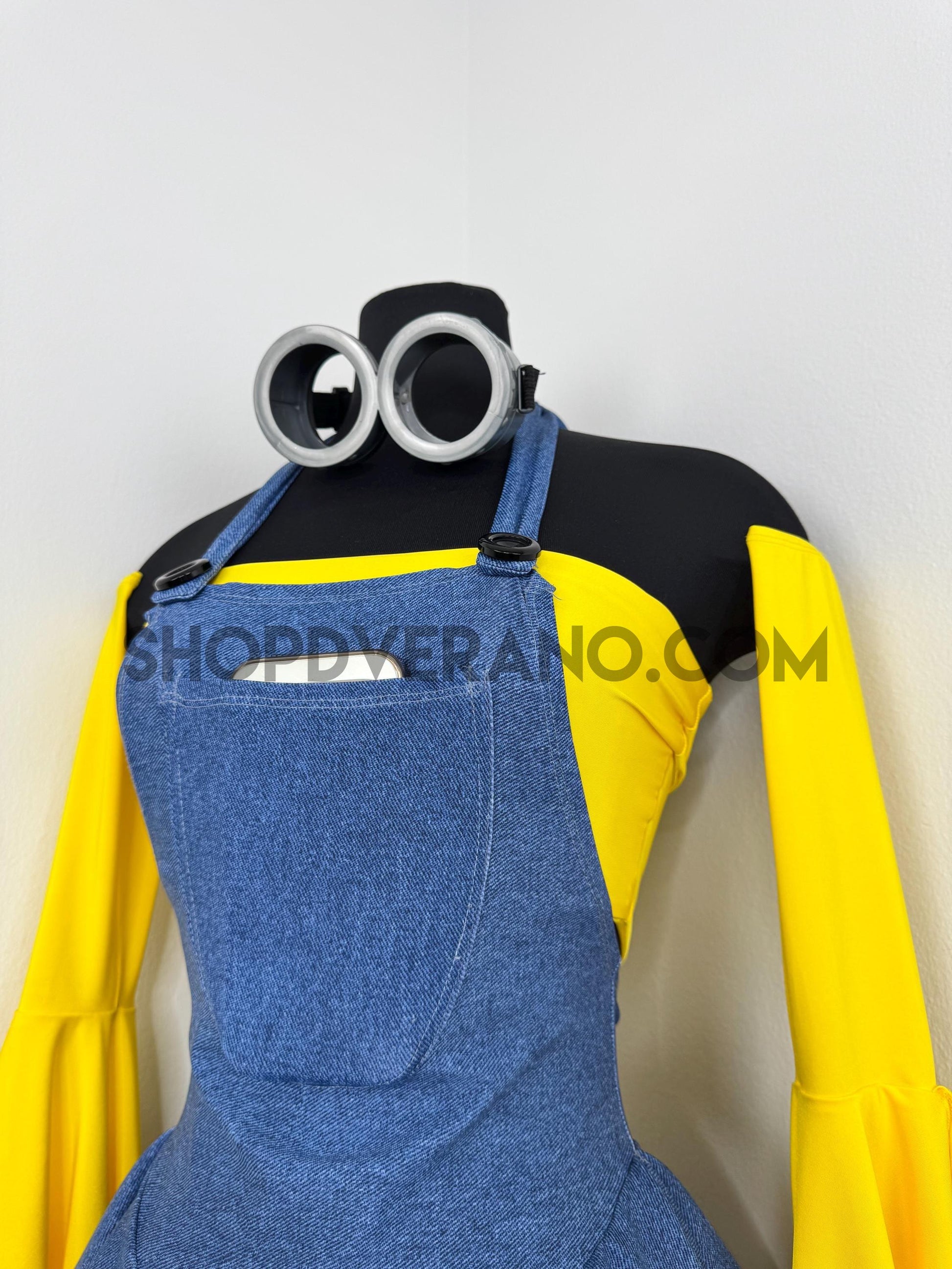 The set is finished with thoughtfully designed accessories that elevate the look without overpowering it. Elastic leg straps with banana charms add a fun, statement detail, while the fairy sleeves bring softness and movement to balance the utility inspired elements. The included goggles complete the look, tying together curiosity, adventure, and mischievous energy.