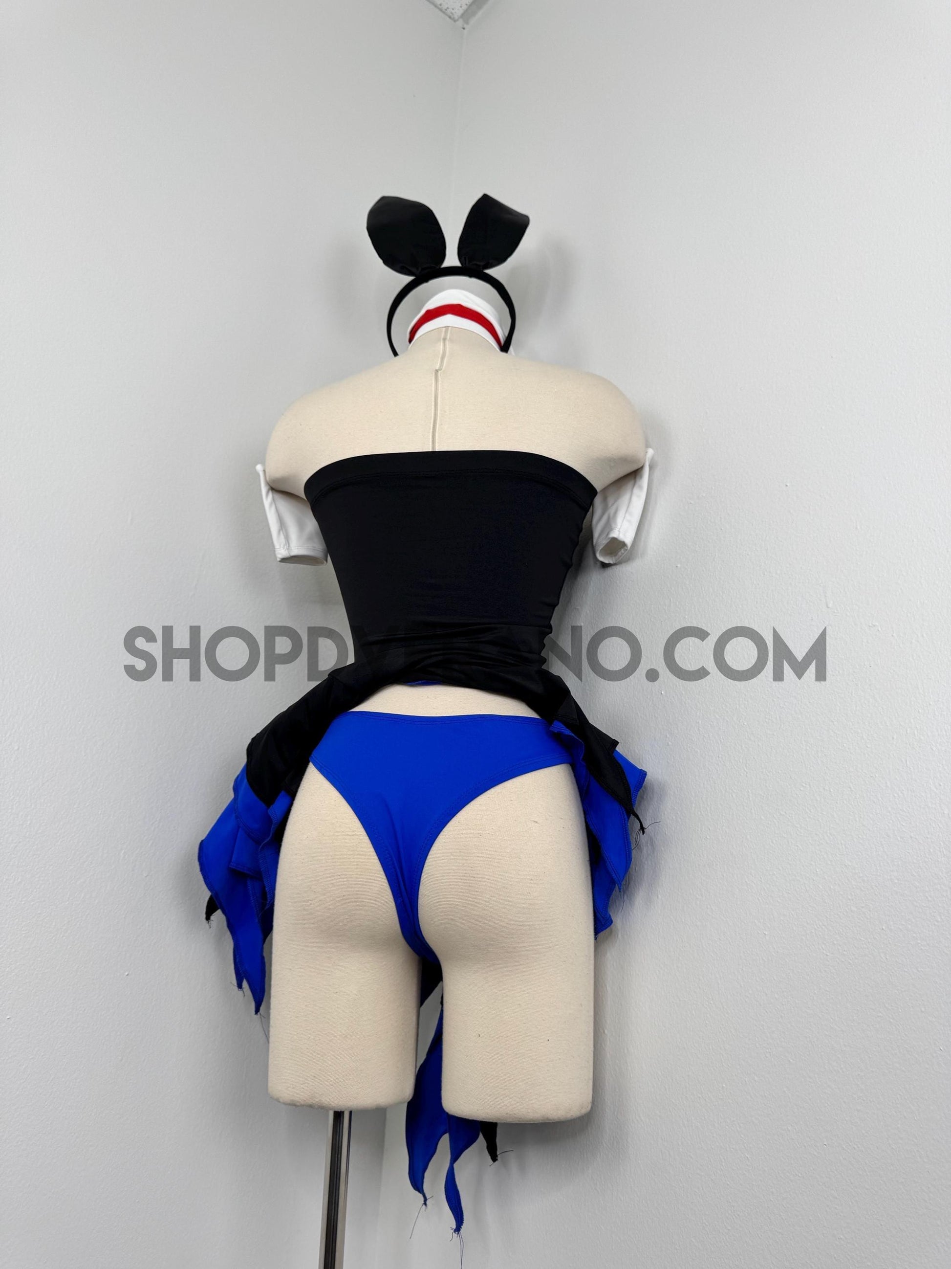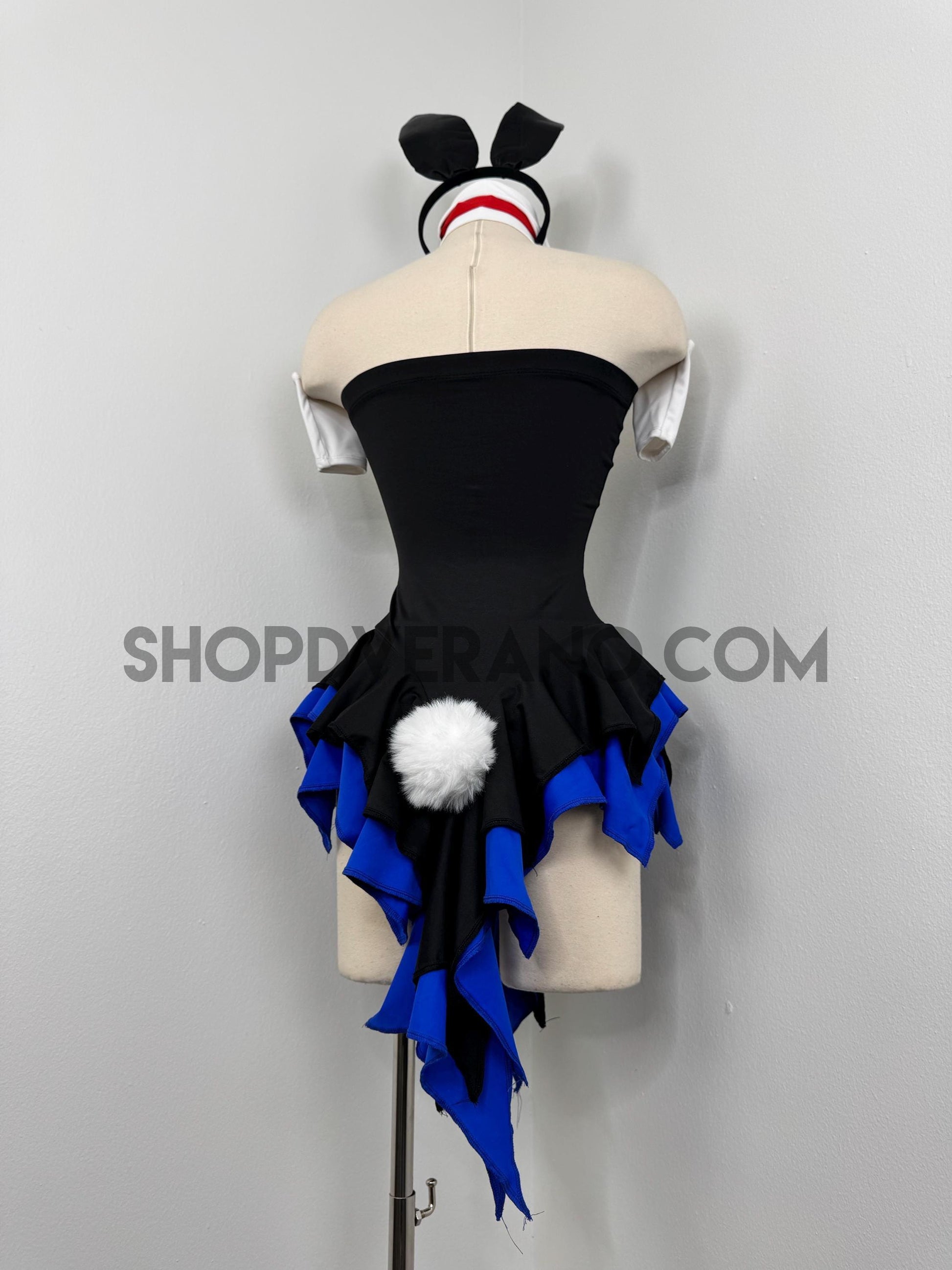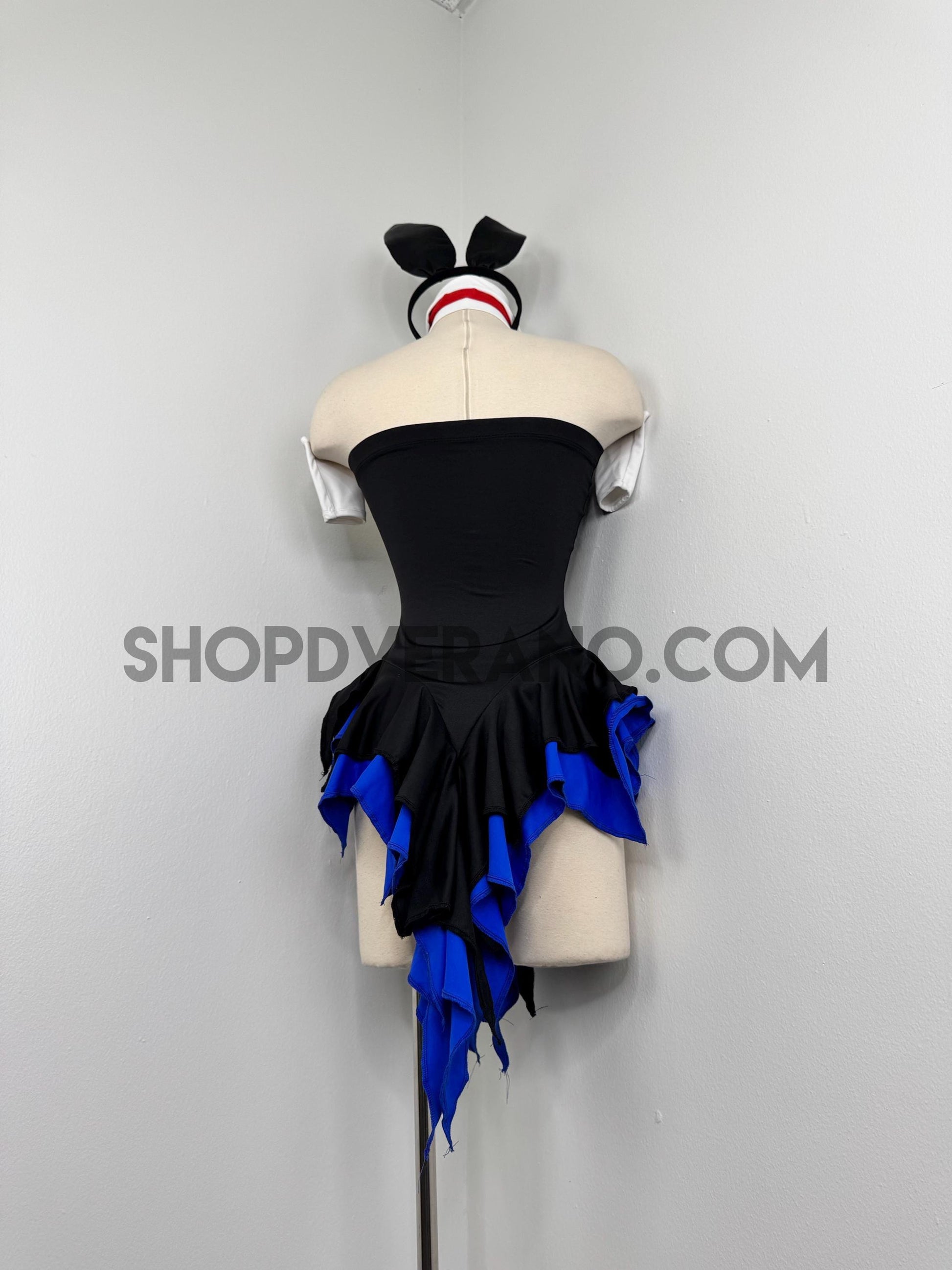 The sculpted bodice flows into layered fairy skirt panels, combining sharp lines with soft movement for a silhouette that highlights the waist and elongates the legs. The contrasting color story gives the look a playful, futuristic edge; balancing boss level confidence with fairycore charm.