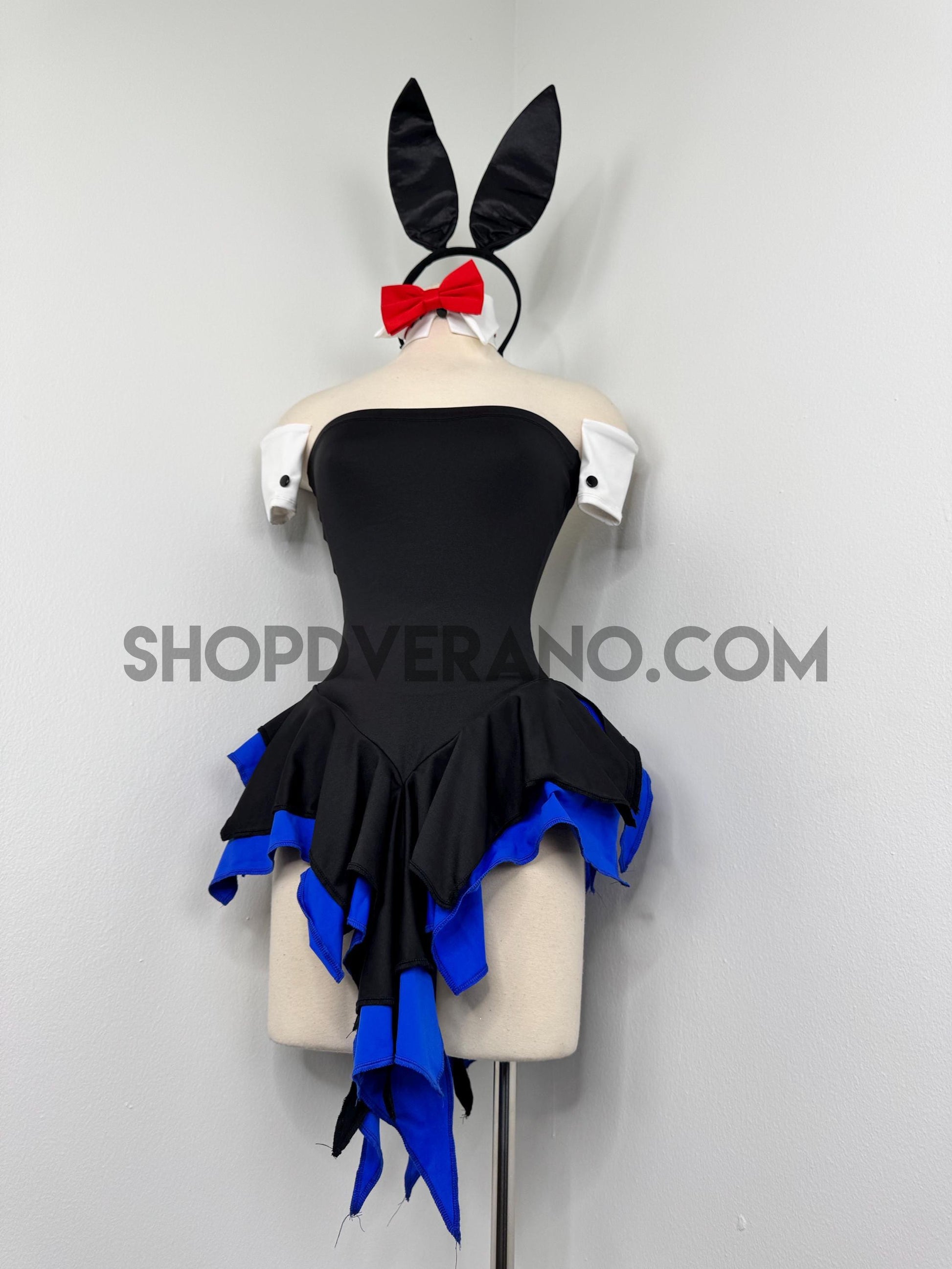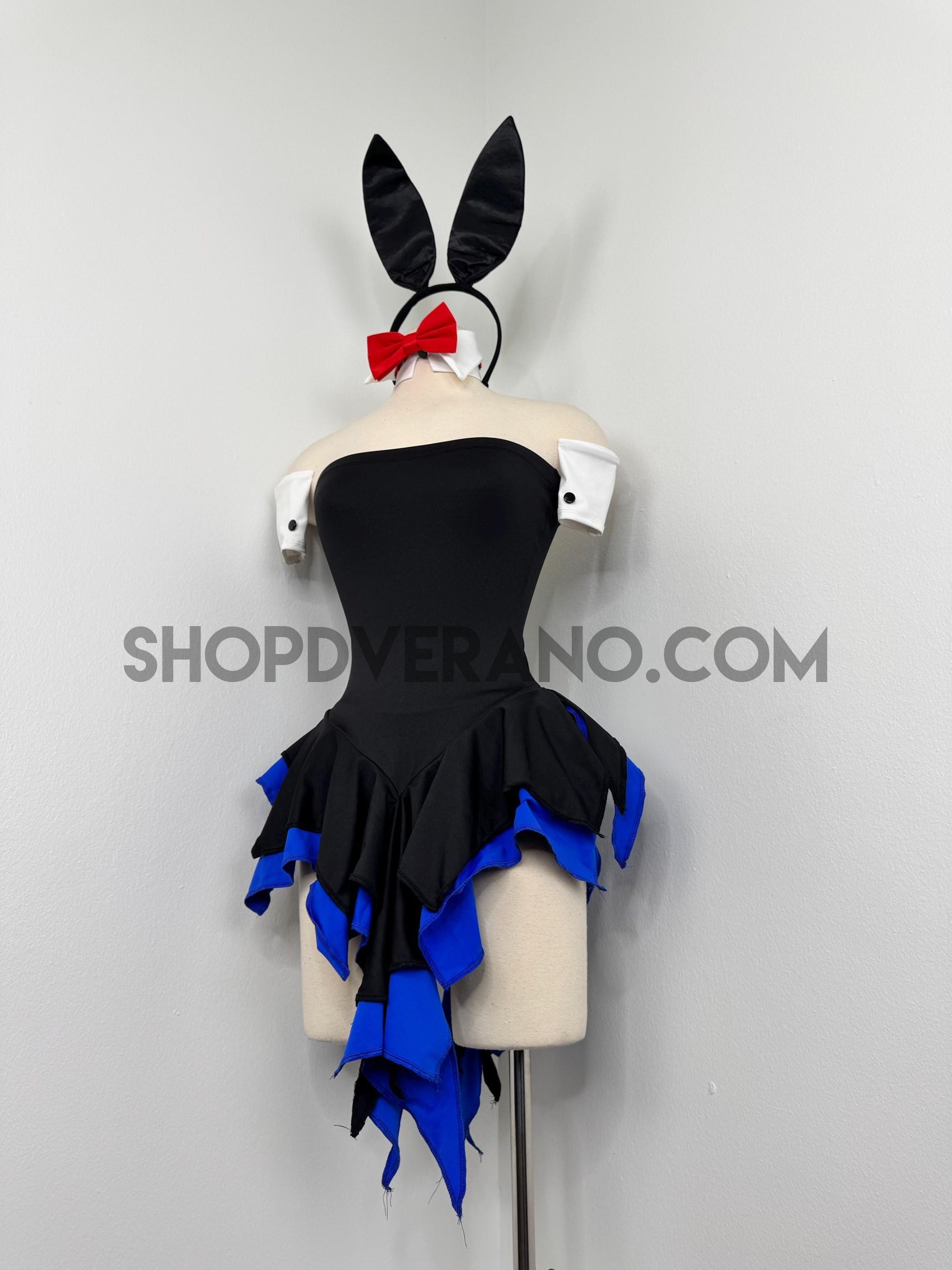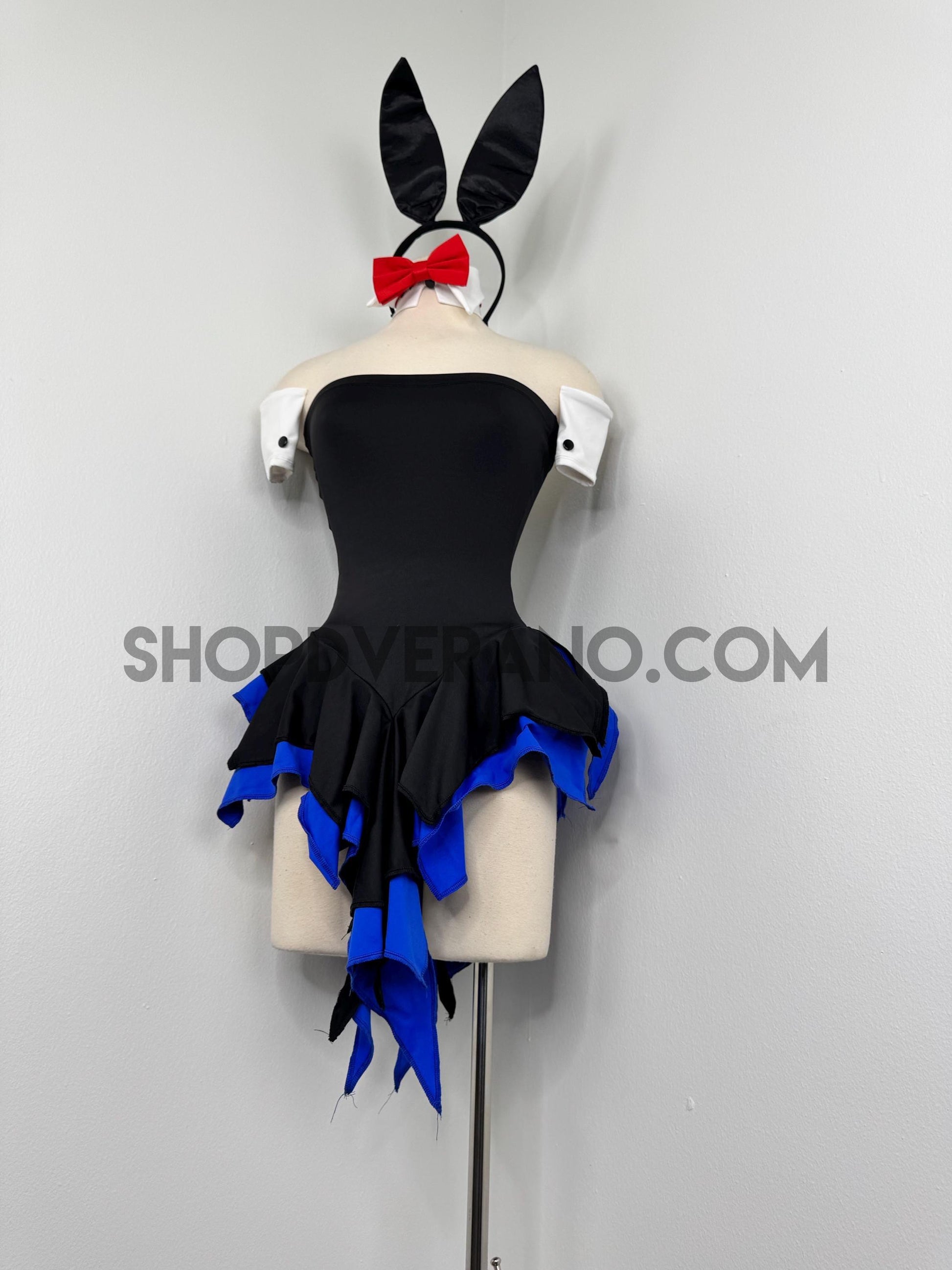 The sculpted bodice flows into layered fairy skirt panels, combining sharp lines with soft movement for a silhouette that highlights the waist and elongates the legs. The contrasting color story gives the look a playful, futuristic edge; balancing boss level confidence with fairycore charm.