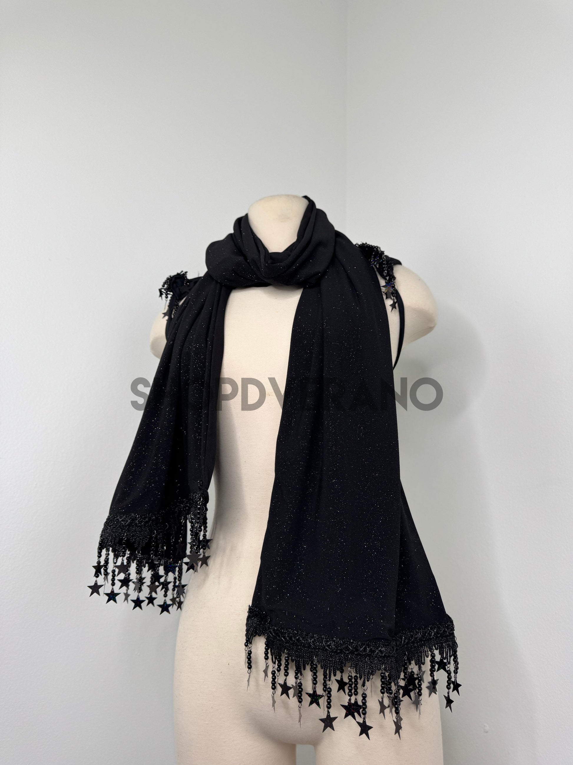 Dark, celestial, and effortlessly striking, the Obsidian Scarf & Hoodie Set is the ultimate after dark layering piece. Designed to elevate any rave, festival, or fantasy look, this set brings together deep black glitter shimmer with celestial detailing for a look that feels powerful, mysterious, and undeniably main character.