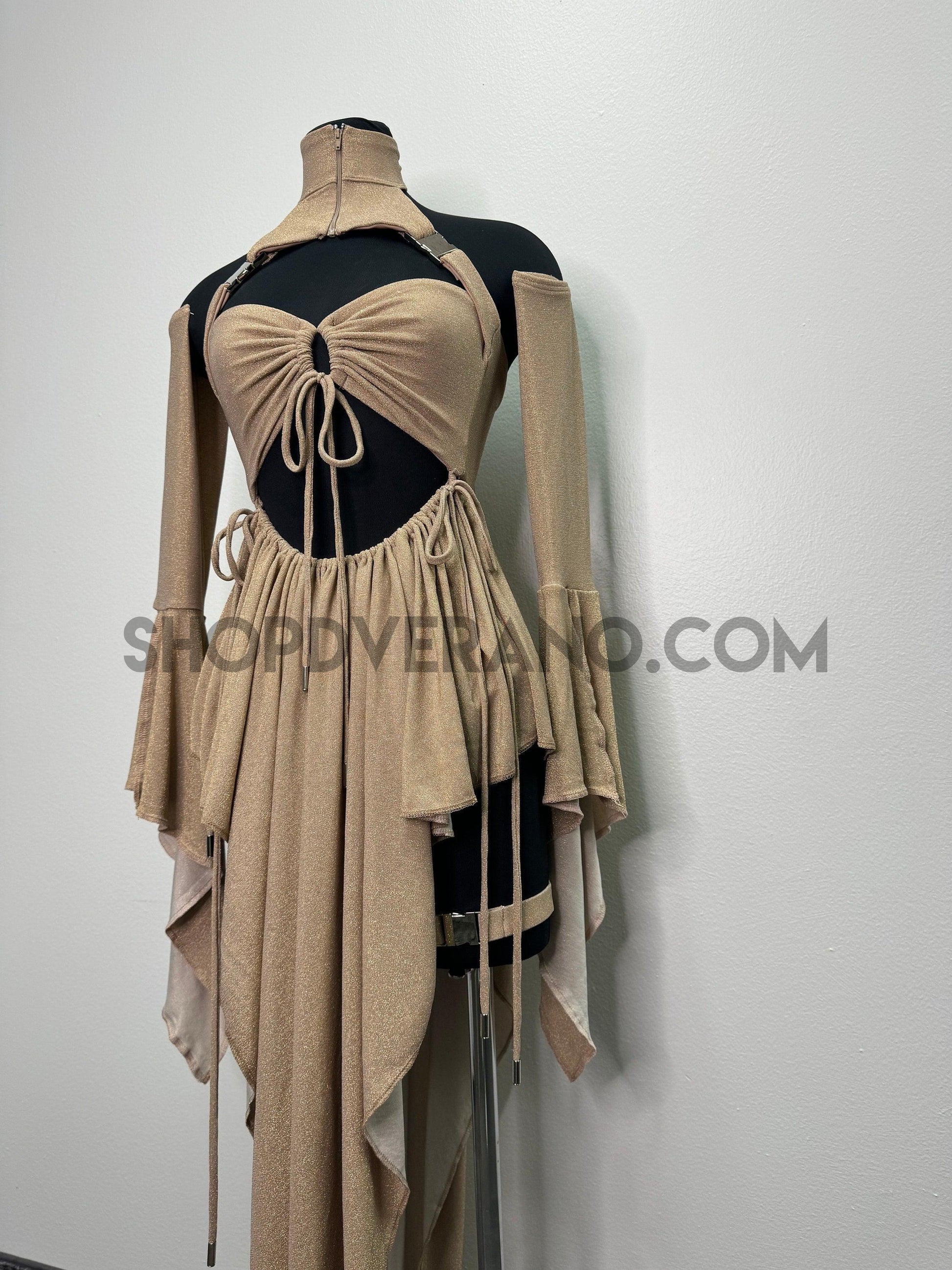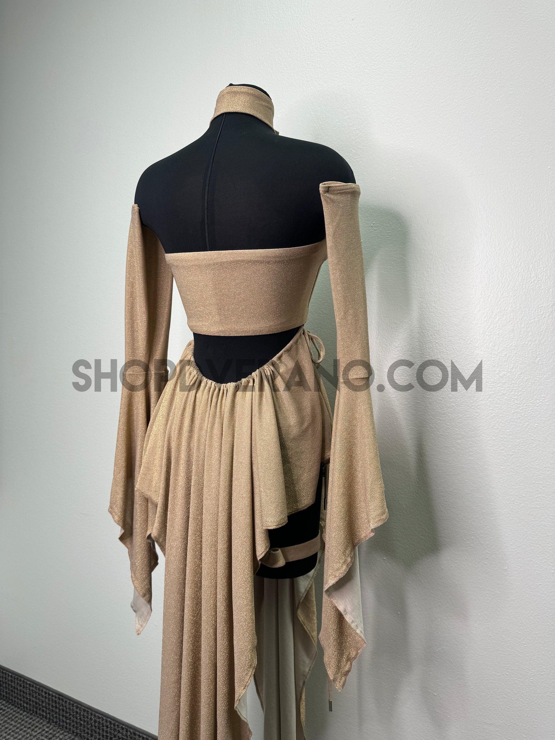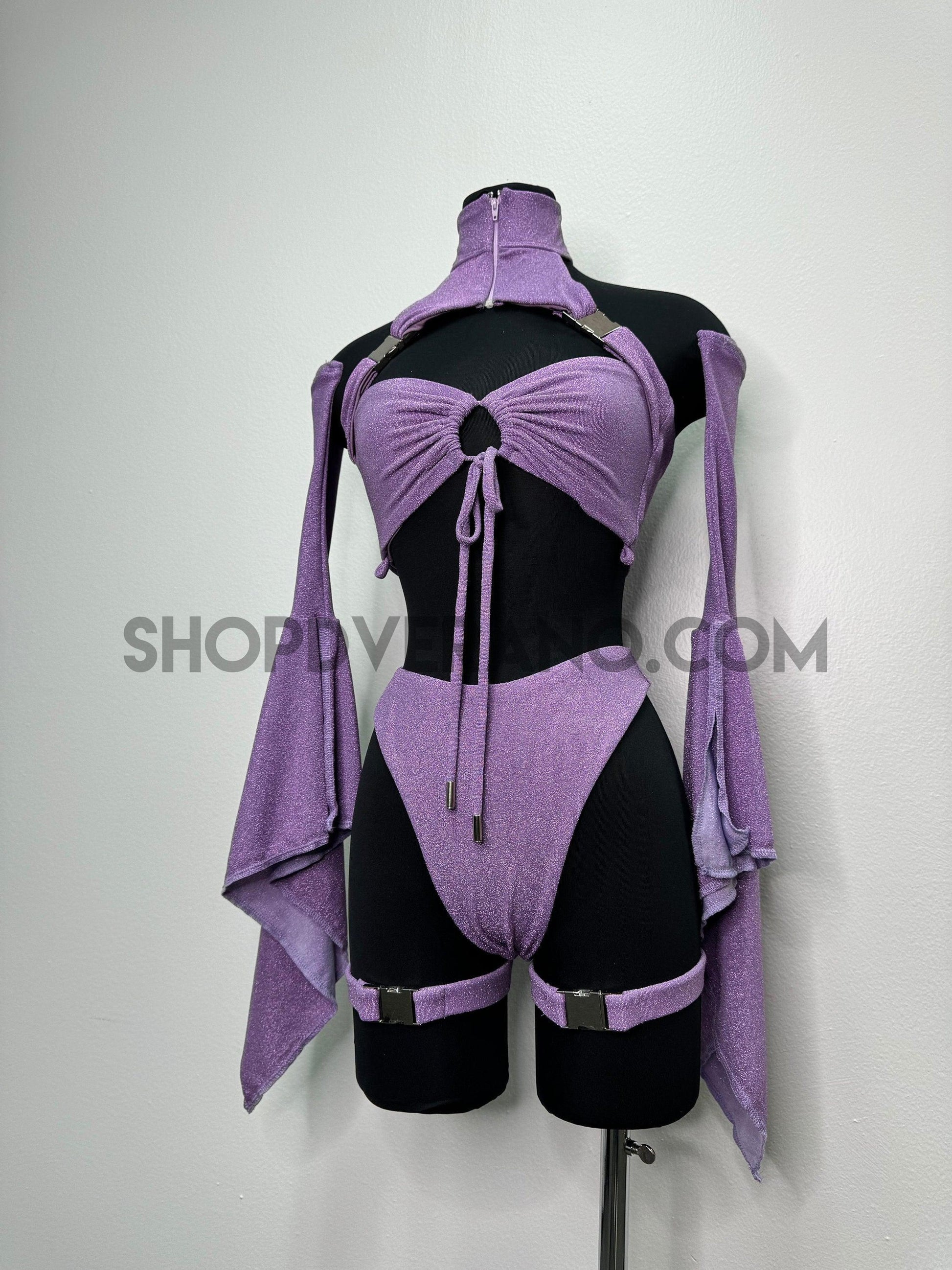 Introducing our new Rave Fairy Goddess Dress with leg Buckles - the perfect festival suit to elevate your party game. Made from Polyester Lurex Spandex, this rave outfit is designed to hug your curves in all the right places while ensuring breathability for hours of dancing and partying. It comes in a complete set, including unique top, removable skirt, bikini bottom, removable sleeves and leg buckles to add the perfect touch. This festival outfit is available in XS -4X sizes, making it a versatile option for all body types.