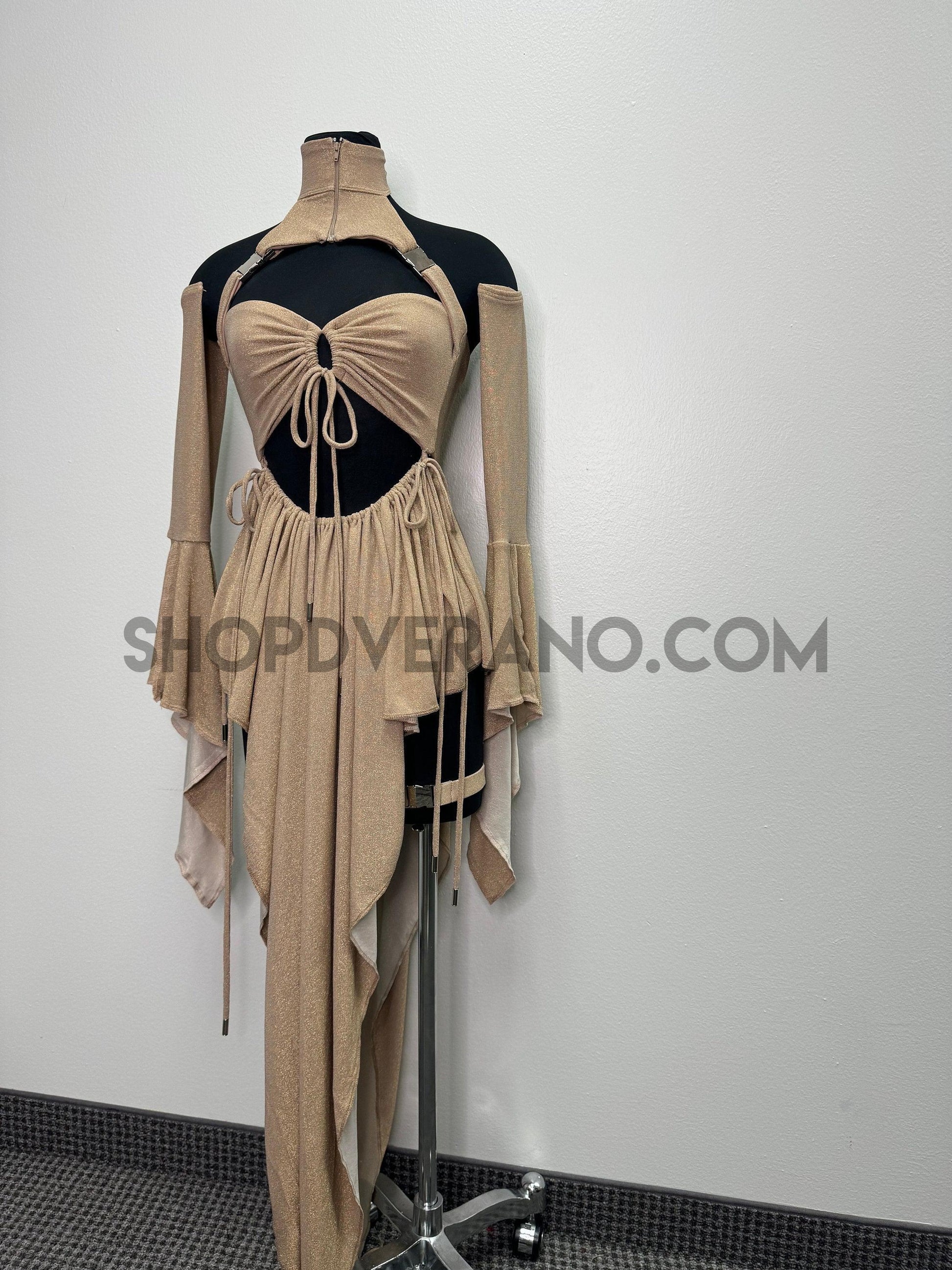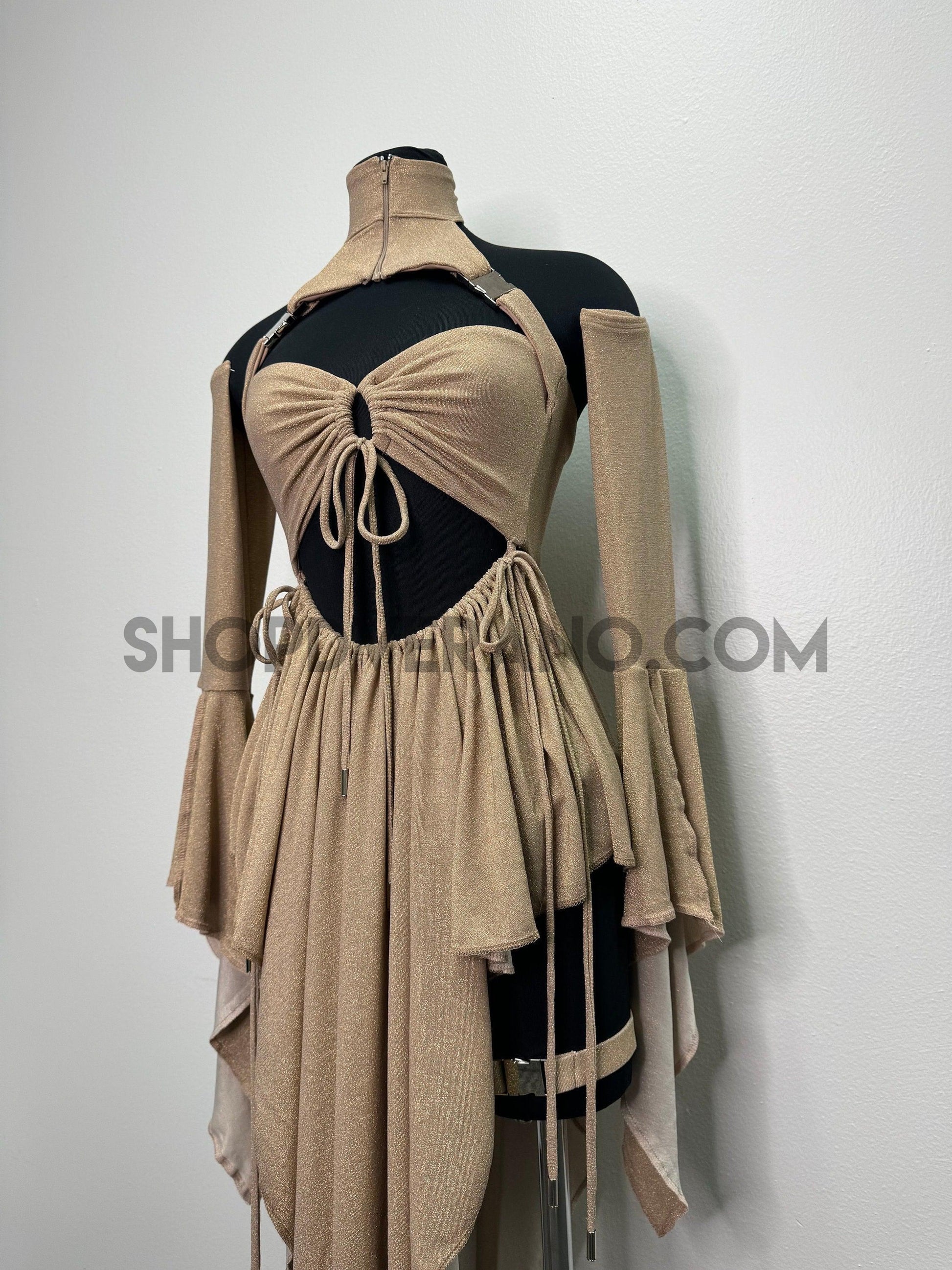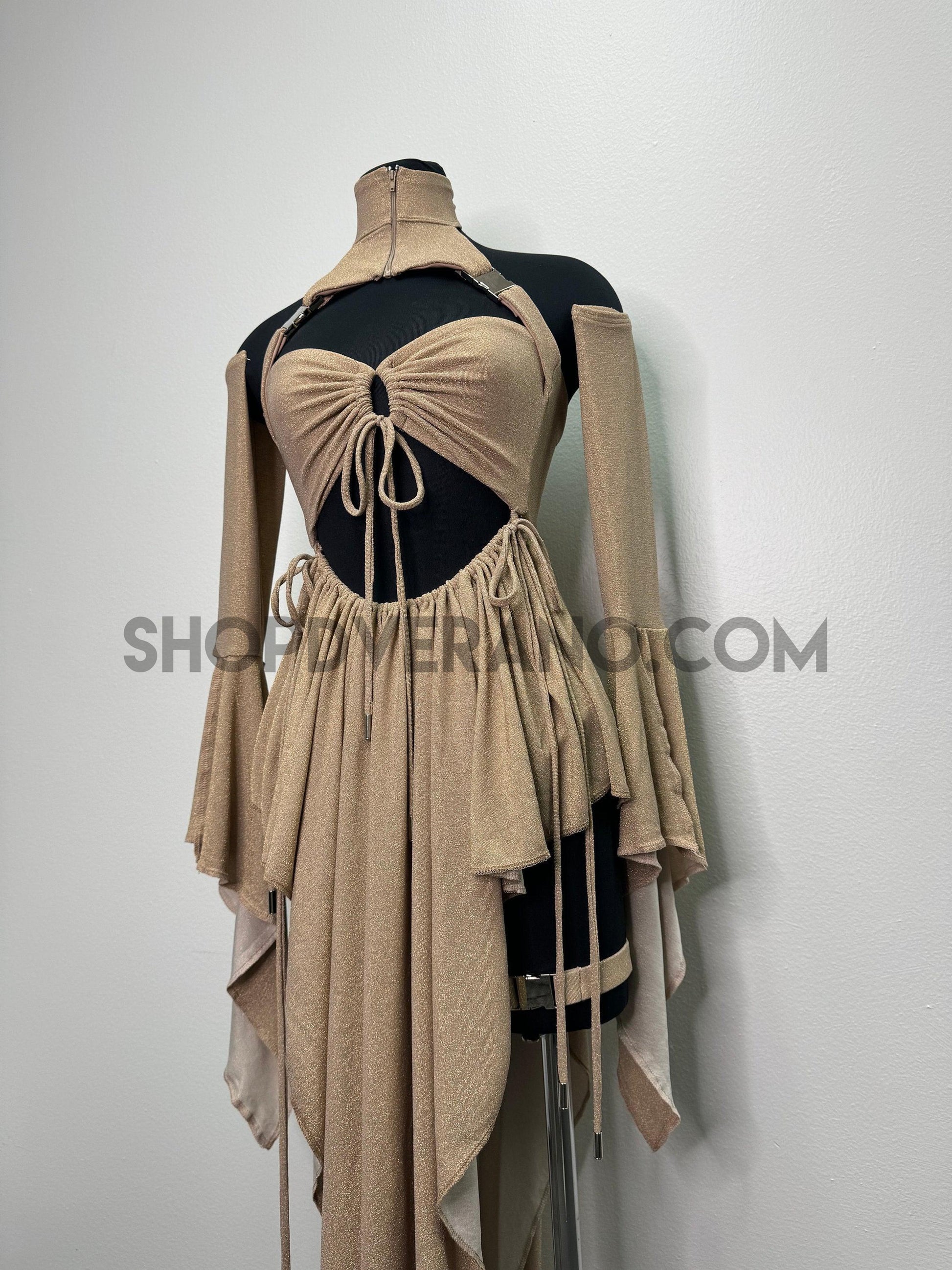 Introducing our new Rave Fairy Goddess Dress with leg Buckles - the perfect festival suit to elevate your party game. Made from Polyester Lurex Spandex, this rave outfit is designed to hug your curves in all the right places while ensuring breathability for hours of dancing and partying. It comes in a complete set, including unique top, removable skirt, bikini bottom, removable sleeves and leg buckles to add the perfect touch. This festival outfit is available in XS -4X sizes, making it a versatile option for all body types.
